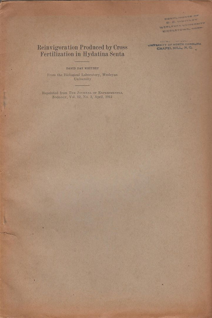 Journ. of exper. zool. 1912. 12. pp. 337-362.. Name stamp front cover, some creasing, else very good. * Science. Zoology. |