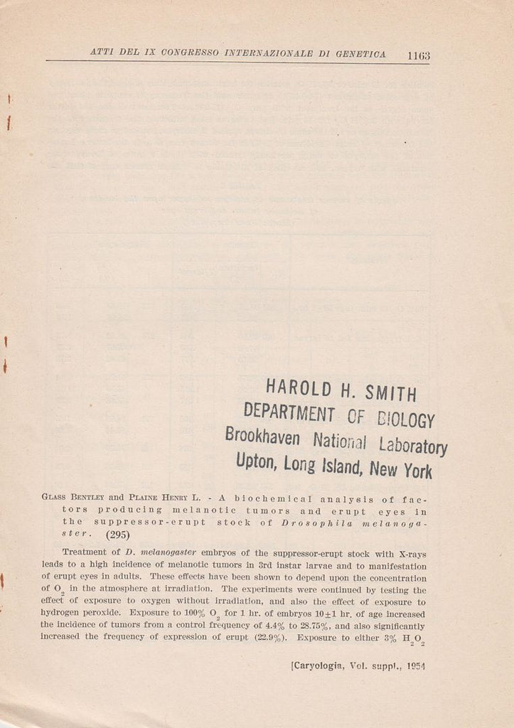Very good condition. First edition. Offprint. Original wrappers. Name stamp of Harold H. Smith on title page. Science. Genetics. Staples are rusted.* |