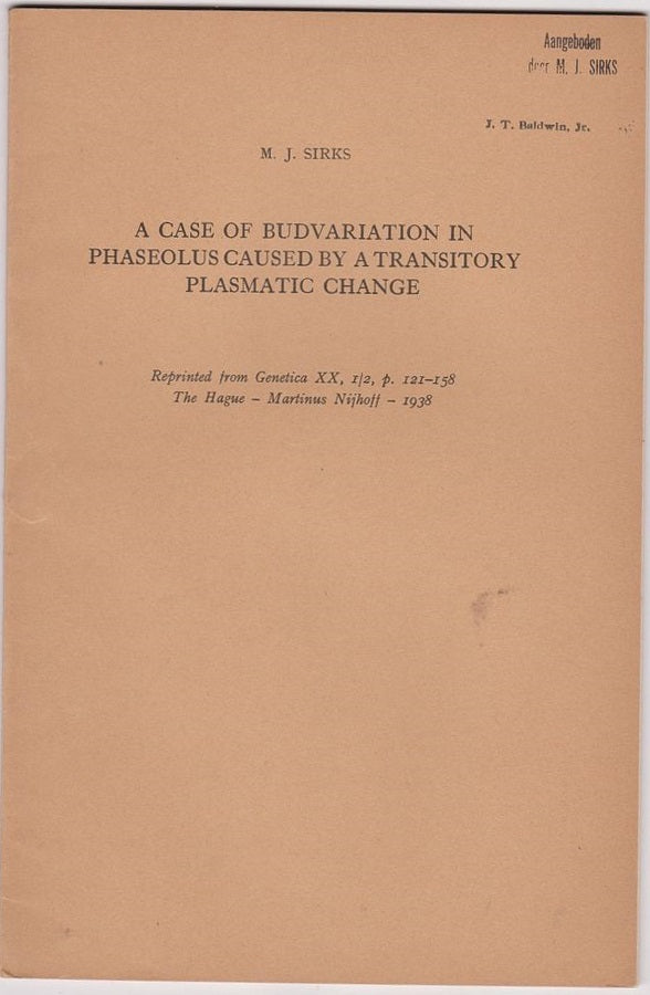 Description 1938. Reprinted from Genetica, XX, 1/2, p. 121-158. Ownership stamp: J.T. Baldwin. Gift stamp (dutch): Anngeboden Door M.J. Sirks. First separate edition. Offprint. Original wrappers. *