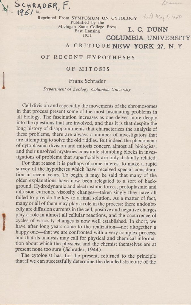 Very good condition. First edition. Offprint. Original wrappers. Name stamp of L.C. Dunn on title page.* |