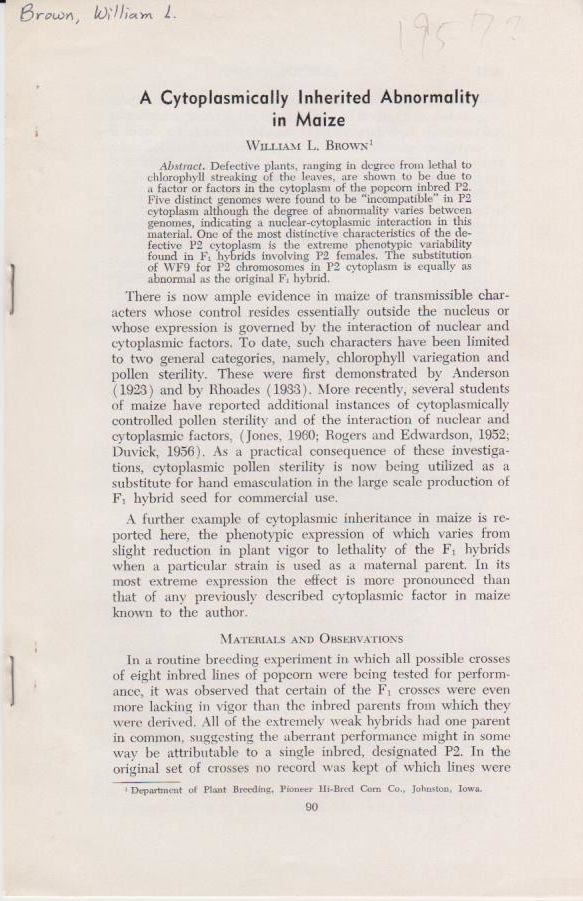 Title A Cytoplasmically Inherited Abnormality in Maize