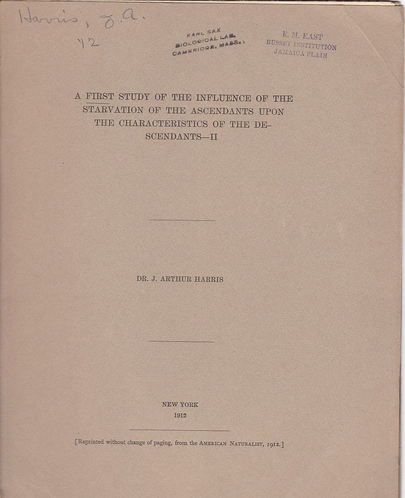 Title A First study of the Influence of the Starvation of the Ascendants upon the Characteristics of the Descendants- II