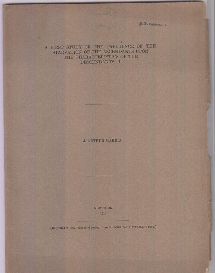 A First Study of the Influence of the Starvation of the Ascendants Upon The Characteristics of the Descendents ? I by Harris, J. Arthur