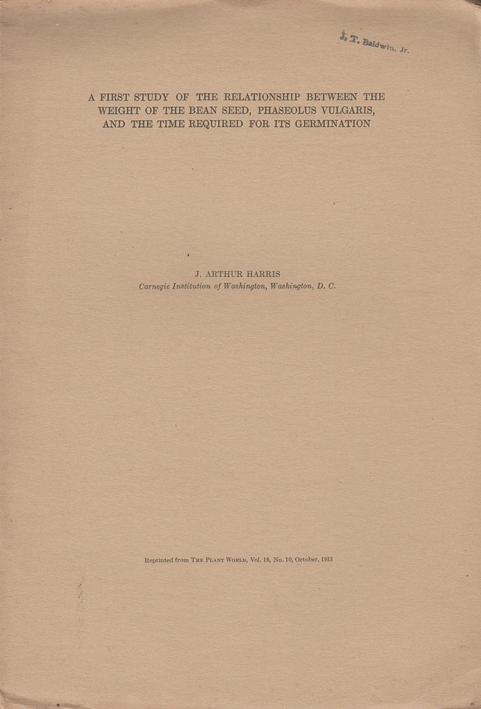 A First Study of the Relationship between the Weight of the Bean Seed, Phaseolus Vulgaris, and the Time Required for its Germination |