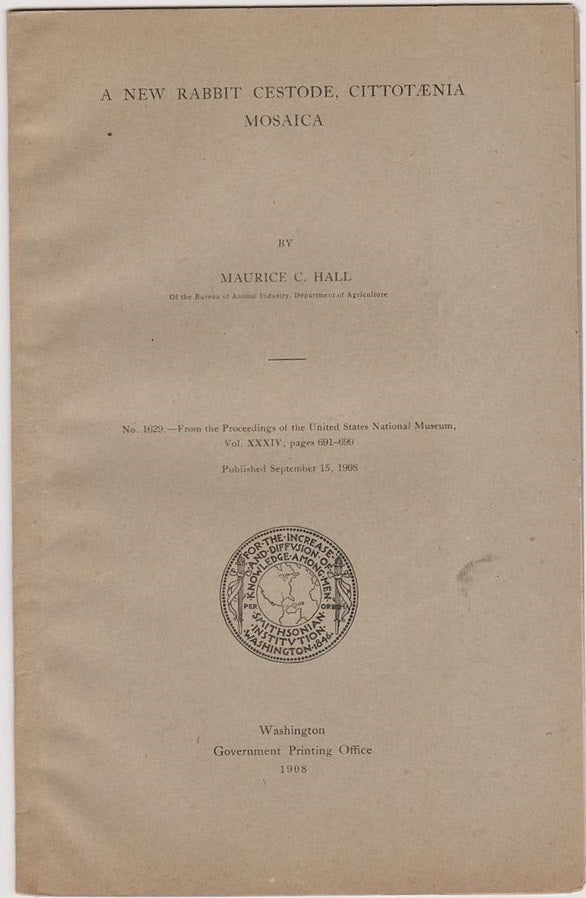 1908. Reprinted from the Proceedings of the United States National Museum, Vol. XXXIV, p. 691-699. First separate edition. Offprint. Original wrappers. * |