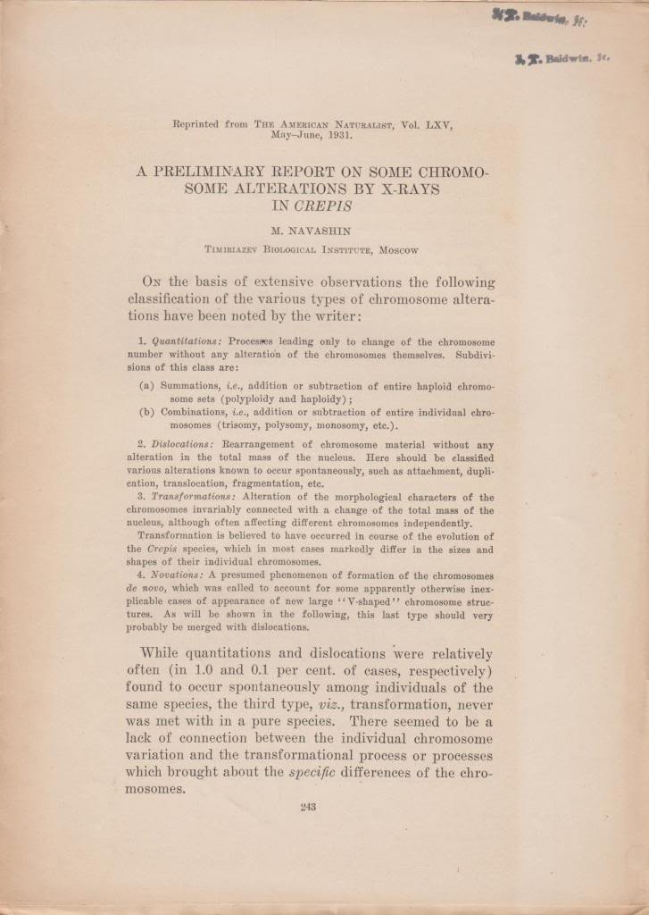 Title A Preliminary Report on some Chromosome Alterations by X-Rays in Crepis