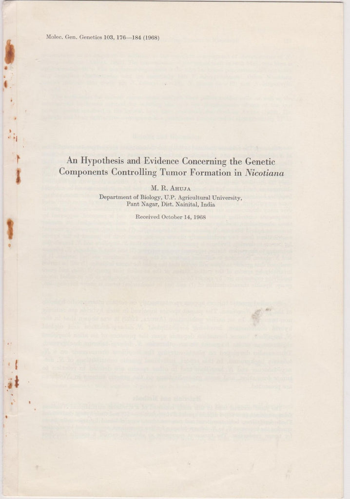 | Title | An Hypothesis and Evidnce Concerning the Genetic Components Controlling Tumor Formation in Nicotiana |