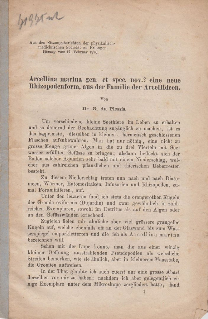 | Title | Arcellina marina gen. et spec. nov.? eine neue Rhizopodenform, aus der Familie der Arcellideen |