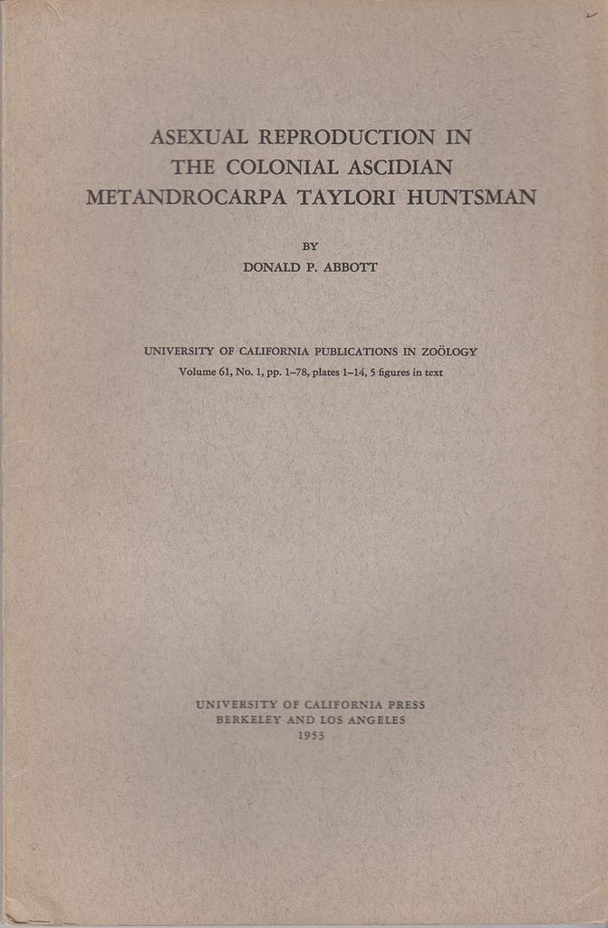 Description University of California Publications in Zoology, Vol. 61, No. 1, pp. 1-78, 1953. First edition. Offprint. Ex-library with one blind-stamp with gift book plate from publisher. Very good quality.*