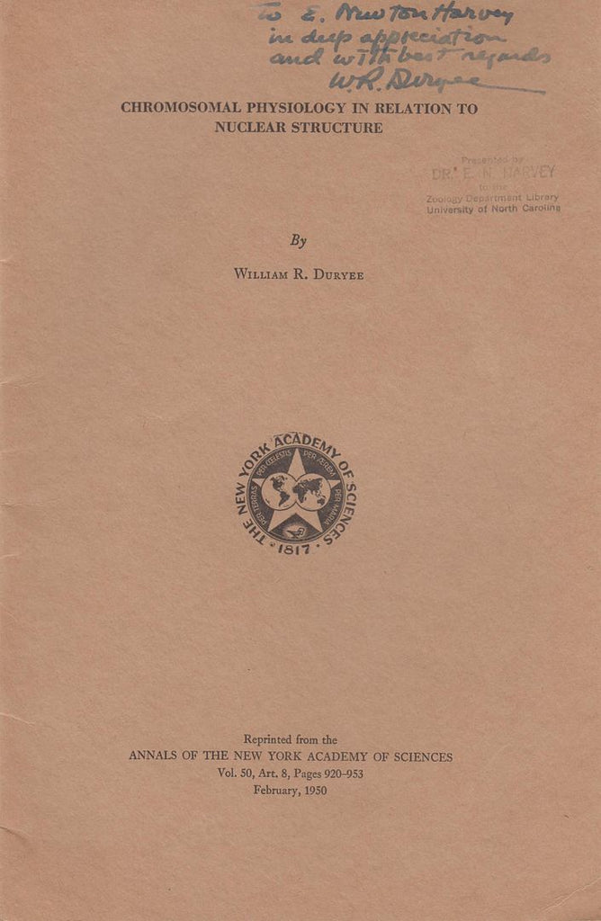 Description Inscribed presentation copy signed by the author to E. N. Harvey. * Very good. Science. Genetics. Physiology.