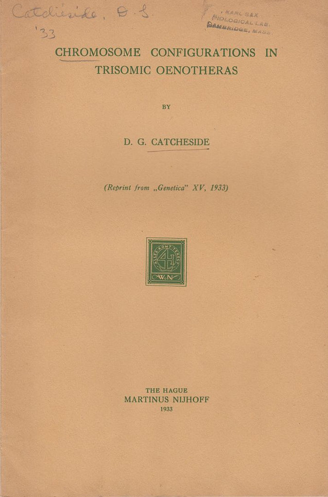 Reprint from Genetica XV, 1933* First edition. Offprint. Original wrappers. Name stamp of Karl Sax on front cover. Science. Genetics. |
