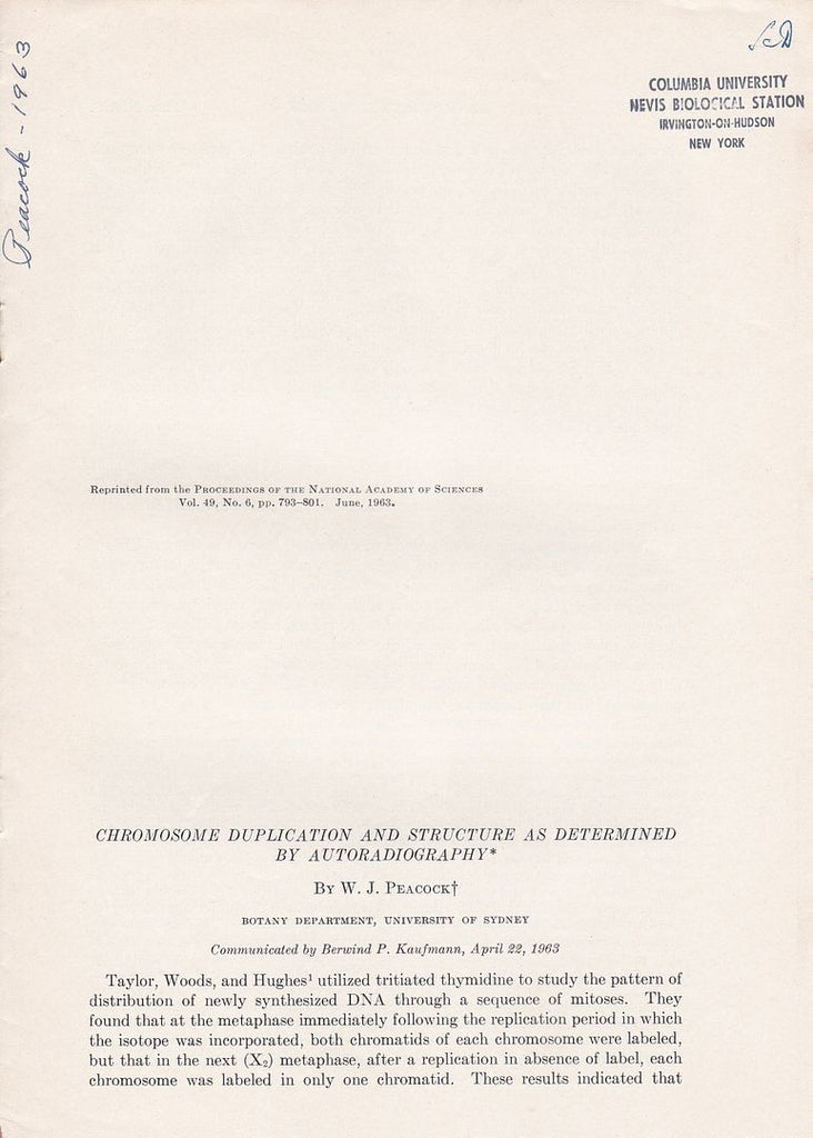 Chromosome Duplication and Structure as Determined by Autoradiography |