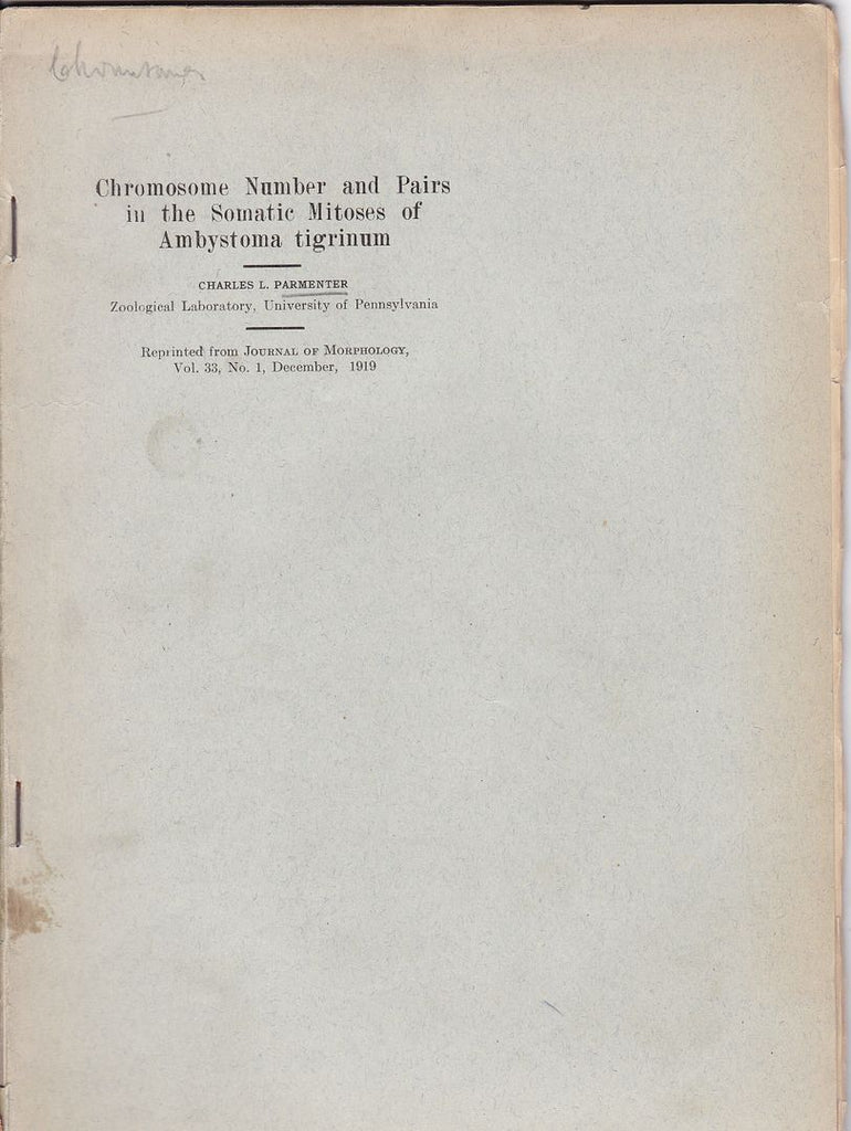 Title Chromosome Number and Pairs in the Somatic Mitoses of Ambystoma tigrinum
