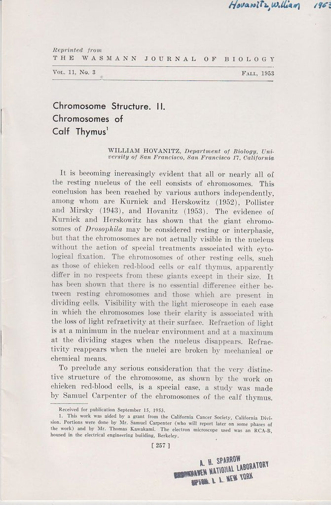 Title Chromosome Structure. II. Chromosomes of Calf Thymus
