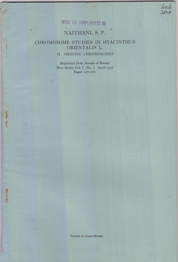 Annals of Botany New Series, Vol. I, No. 2 April 1937, Pages 257-276. First separate edition. Offprint. Original wrappers. * |