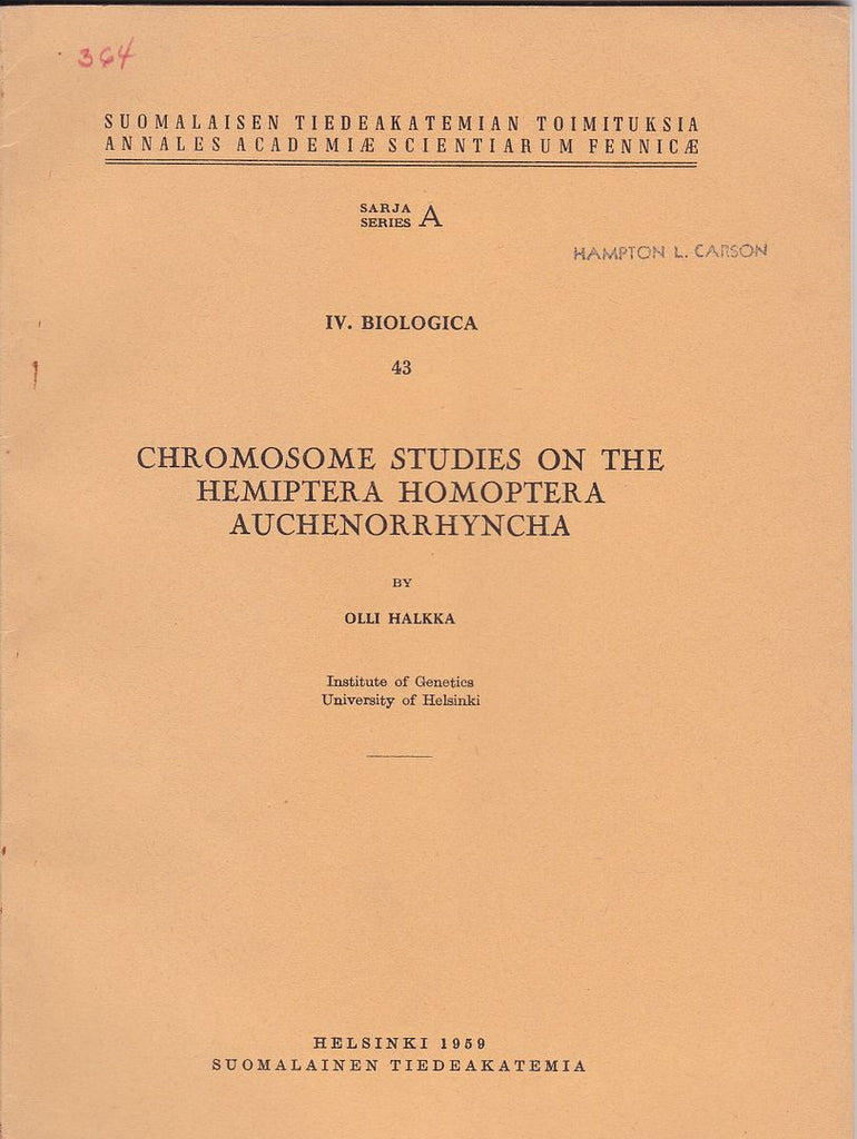 Title Chromosome studies on the Hemiptera Homoptera Auchenorrhyncha