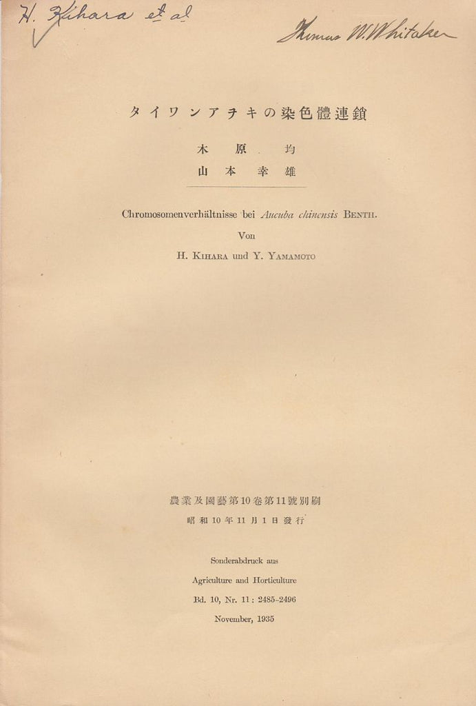 Description Very good condition. First edition. Offprint. Original wrappers. Science. Genetics. Agriculture.*