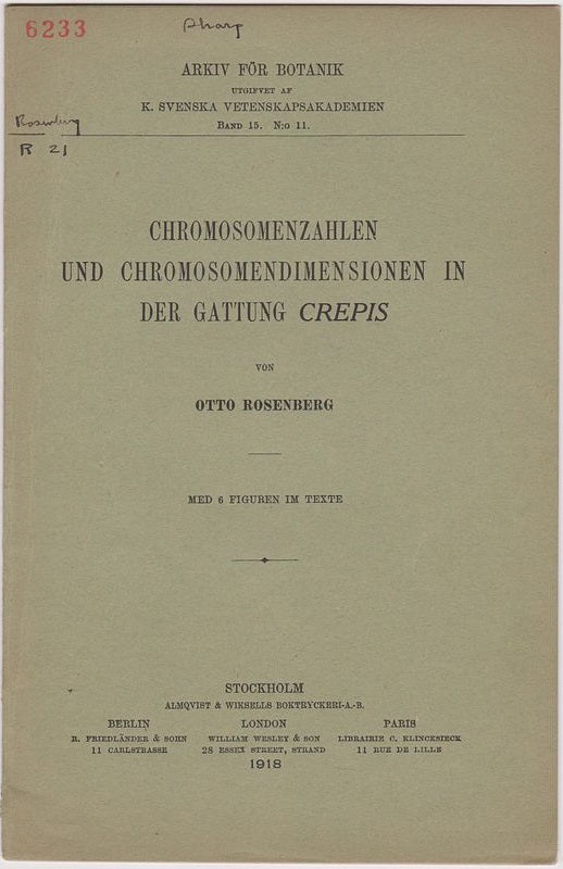 Description 1918. Reprinted from Arkiv for Botanik Band 15, N:o 11. First separate edition. Offprint. Original wrappers.*