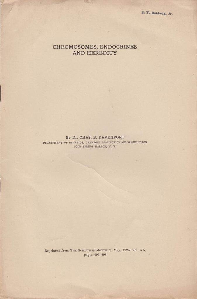 Description The Scientific Monthly, May 1925, Vol. XX, pp 491-498. J. T. Baldwin, Jr. stamp front cover, some minor creasing else very good. Medicine. Cytology. Biology. Heredity. * Worldcat shows only 1 holding.