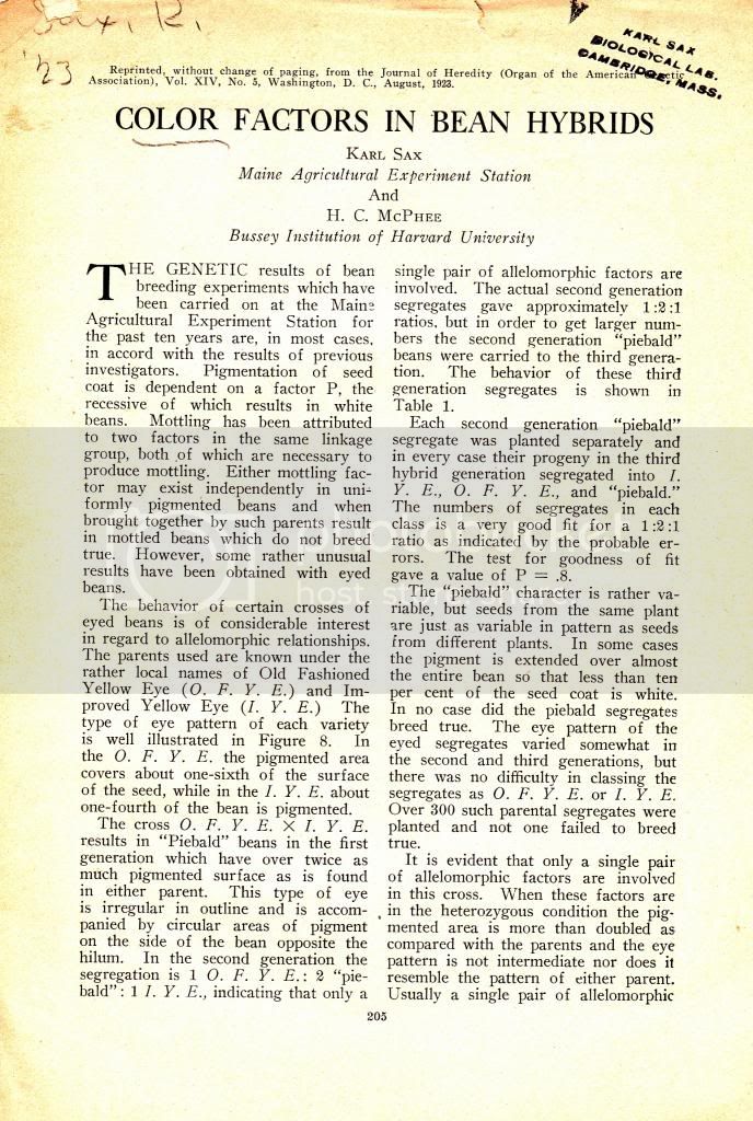 Name Stamp of Karl Sax Biological Lab Cambridge, Mass. on first page. First edition. Offprint. Original wrappers.* |