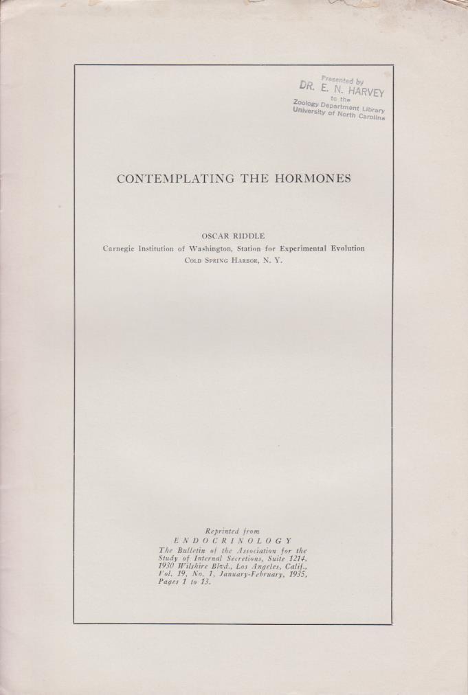 Description Offprint Endocrinology vol. 19, no. 1, p. 1-13 January-February, 1935. Dr. E. N. Harvey Stamp on front cover, very good. * Endocrinology. Physiology. First edition. Offprint.