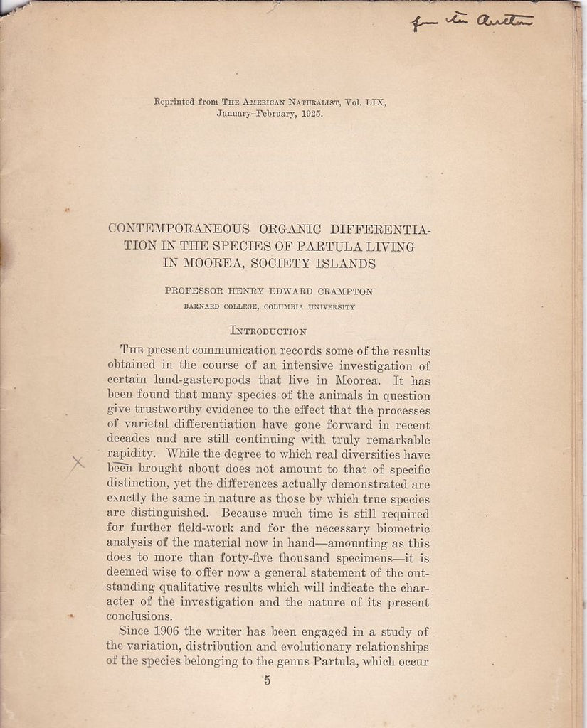 Contemporaneous Organic Differentiation in the Species of Partula Living In Moorea, Society Islands |