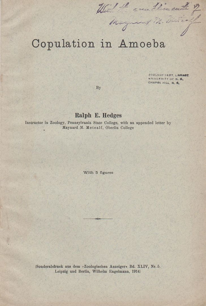 Author Hedges, Ralph E. appended letter by Maynard M. Metcalf