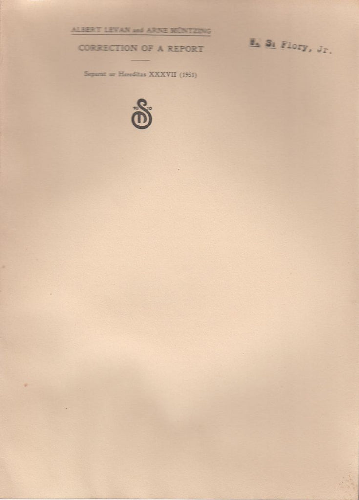 Description Very good condition. Name stamp of W.S. Flory, Jr. on front cover.* First edition. Offprint. Genetics.