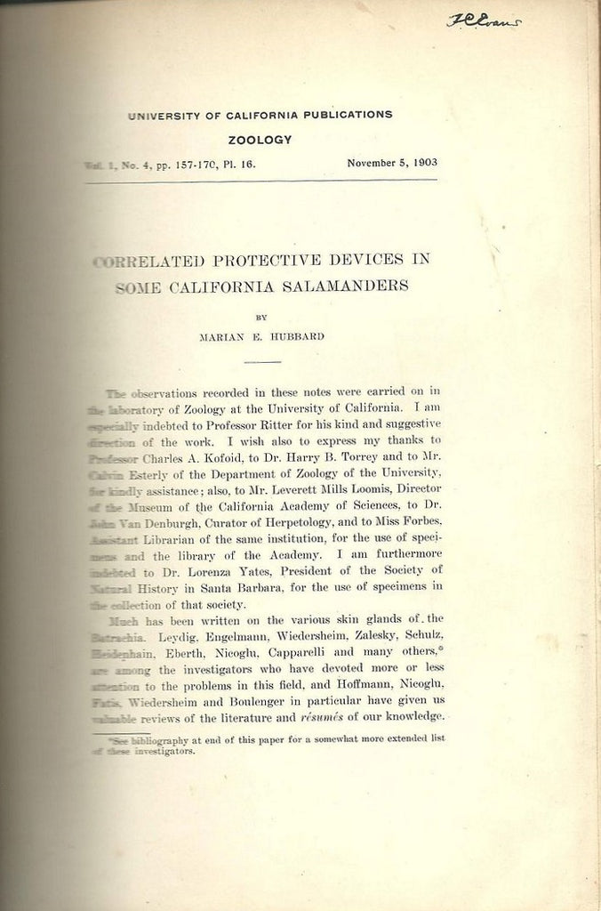 First edition. Original offprint bound in boards. 157-171. Zoology. Science offprint. California. Ink mark title page of offprint. uncommon. |