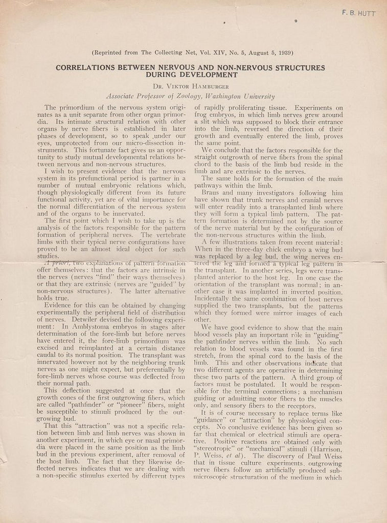 Very good condition. First edition. Offprint. Original wrappers. Ownership stamp of F.B. Hutt on title page. Science. Biology. * |