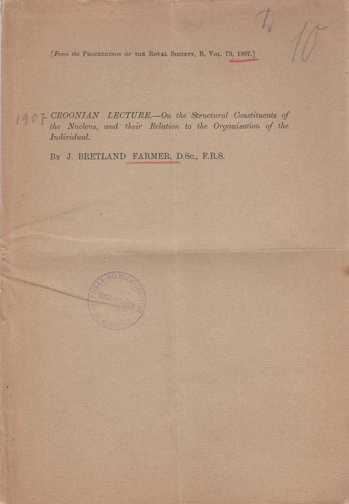 First separate edition. Offprint. Original wrappers. Cytology. Science. Botany. Institution stamp front cover. * |