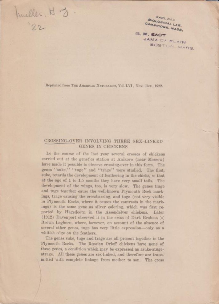 Very good condition. First edition. Offprint. Original wrappers. Ownership stamps of Karl Sax and E.M. East on title page.* |