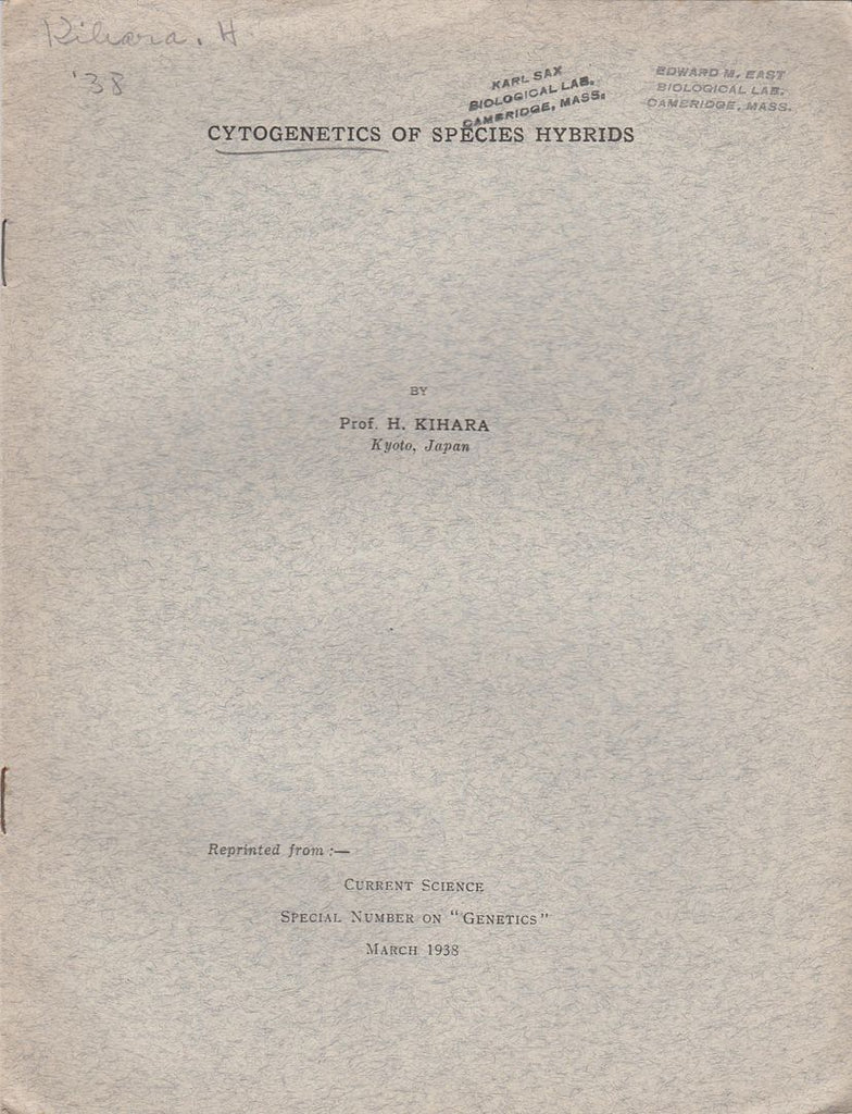 Very good condition. First separate edition. Offprint. Original wrappers. Ownership stamps of Karl Sax and Edward M. East on front cover. Staples are rusted. Science. Genetics.* |