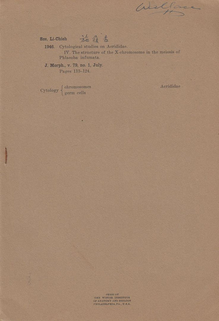 Cytological Studies on Aerididae IV. The Structure of the X-Chromosome in the Meiosis of Phlaeoba infumata |
