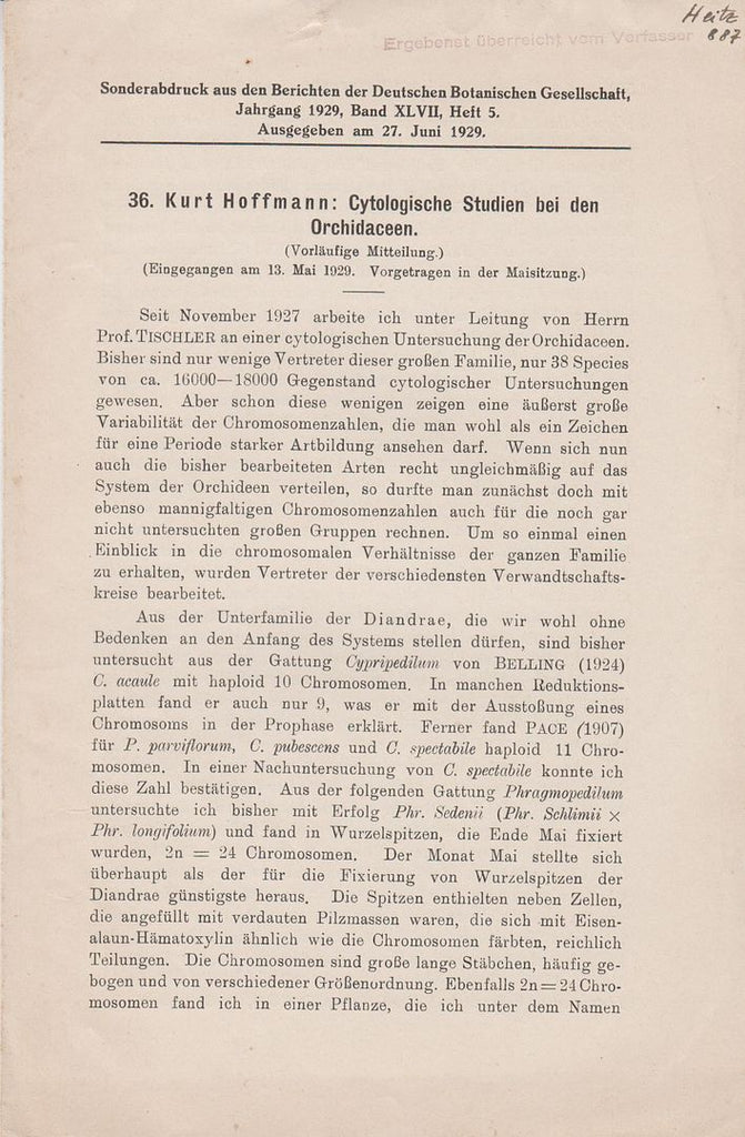 Cytologische Studien bei den Orchidaceen by Hoffmann, Kurt