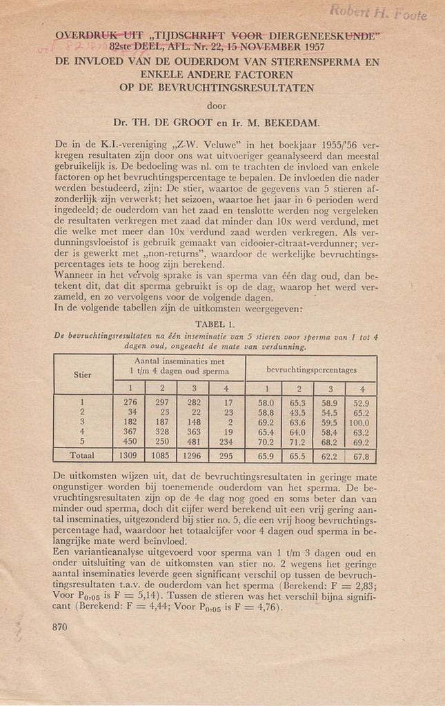 De Invloed vande Ouderdom van Stierensperma en Enkele Andere Factoren op de Bevruchtingsresultaten |