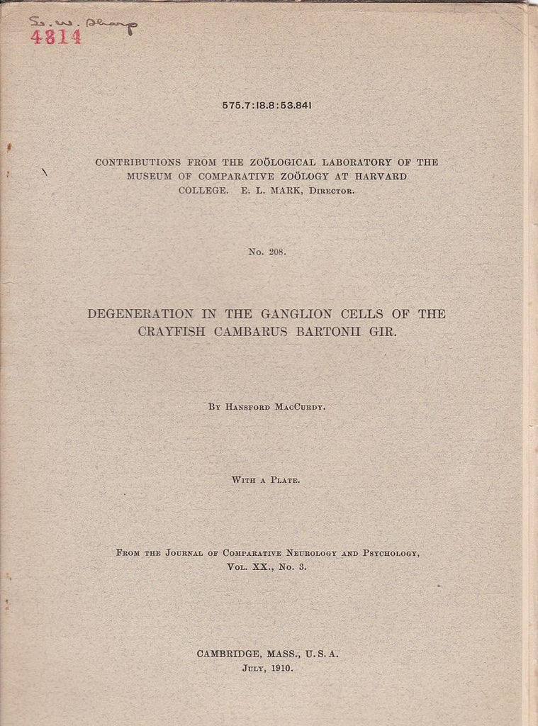 Degeneration in the Ganglion Cells of the Crayfish Cambarus Bartonii Gir. |
