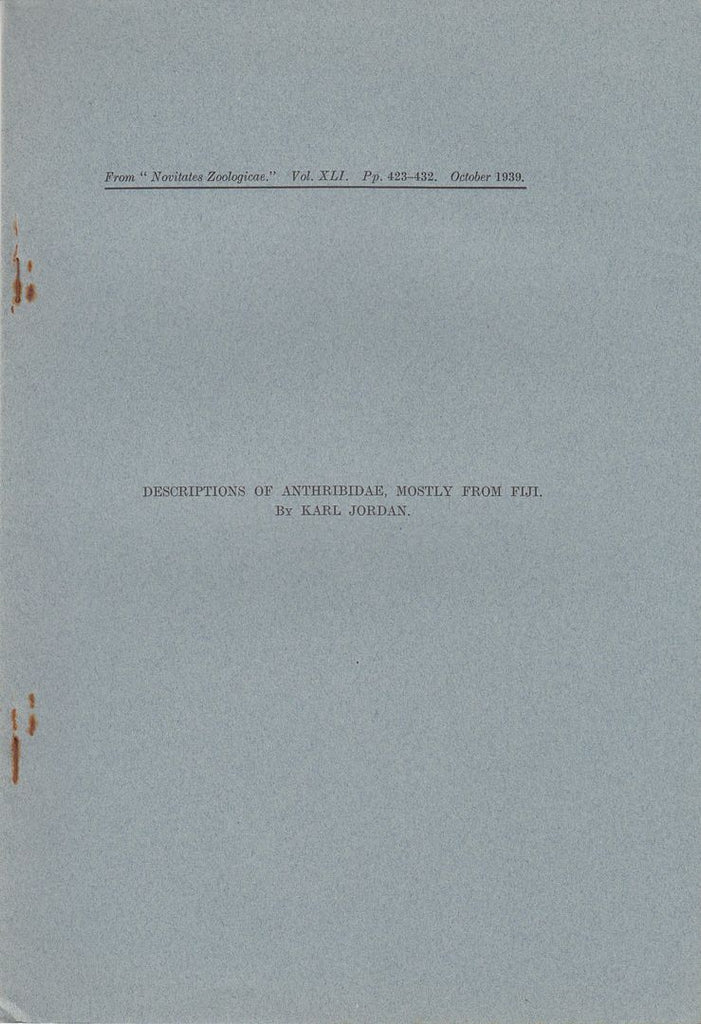 Very good condition. First edition. Offprint. Original wrappers. Science. Zoology. Staples are rusted.* |