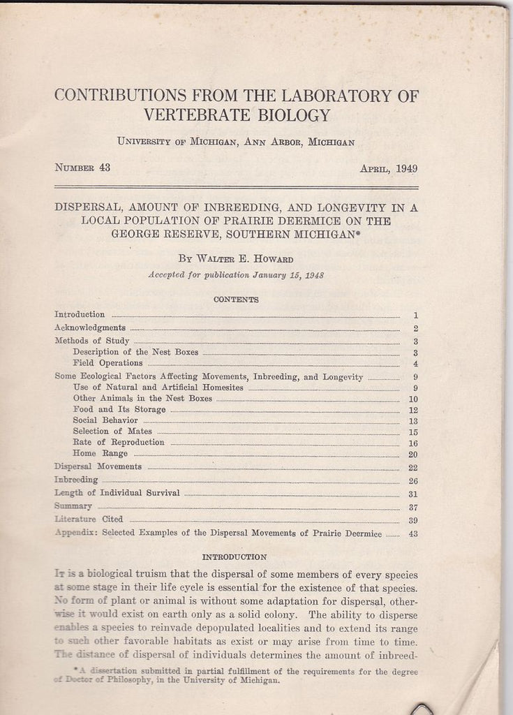 Dispersal, amount of inbreeding, and longevity in a local population of Prairie Deermice on the George Reserve, Southern Michigan |