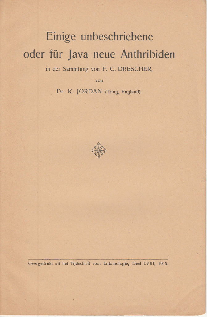 Description First edition. Offprint. Original wrappers. Reprinted from Tijdschrift voor Entomologie, Deel LVIII, 1915. Little creased else very good. In Dutch *