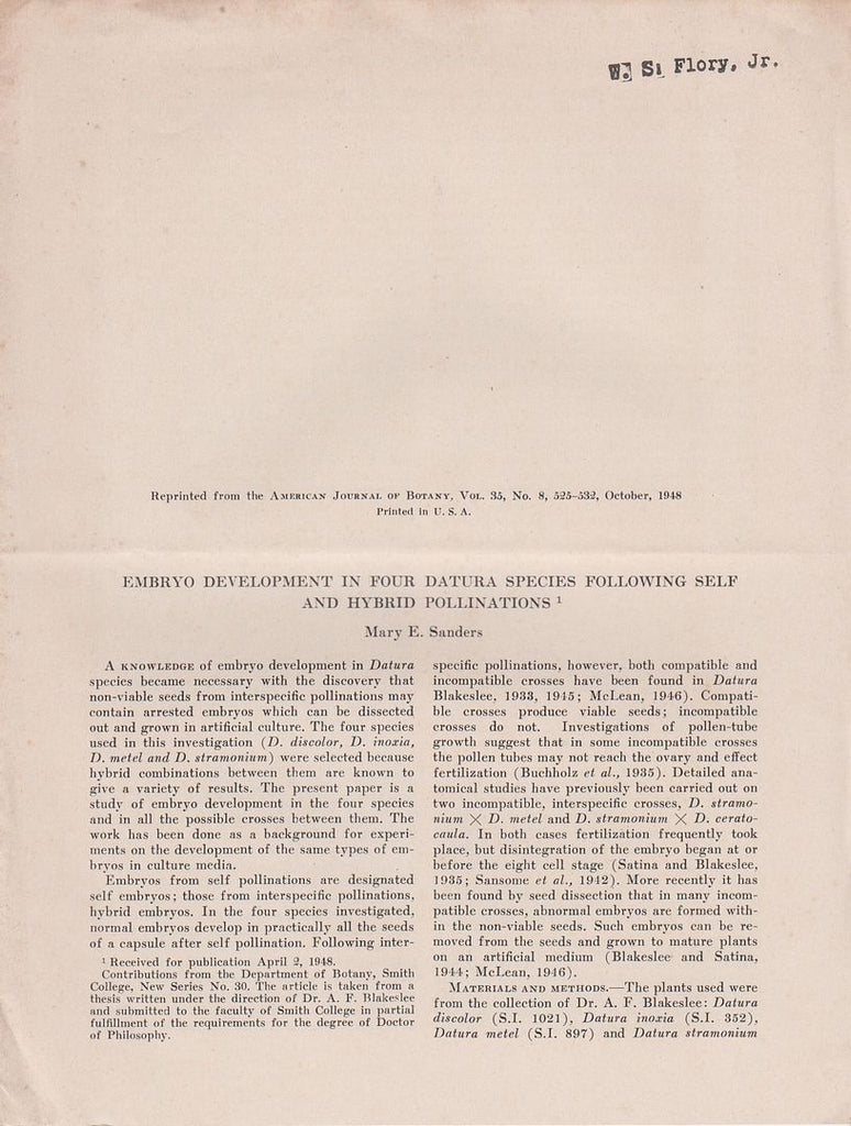 Title Embryo Development in Four Datura Species Following Self and Hybrid Pollinations