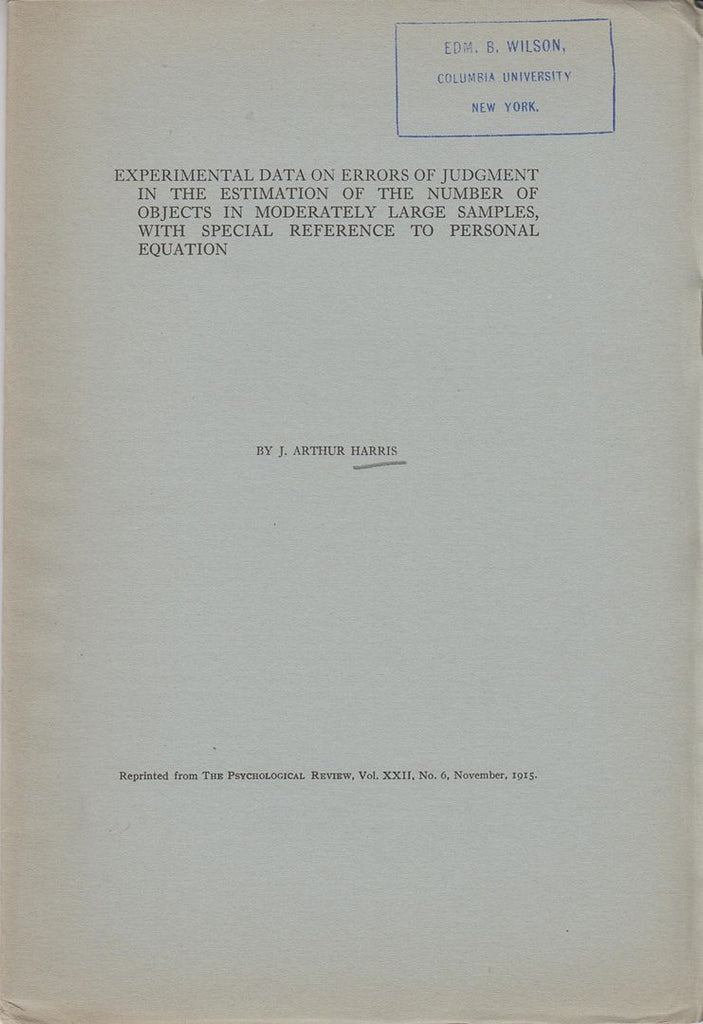 Experimental Data On Errors Of Judgment In The Estimation Of The Number Of Objects In Moderately Large Samples, With Special Reference To Personal Equation by Harris, Arthur