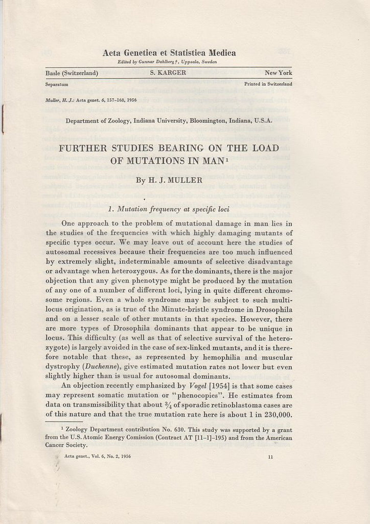 Description Very good condition.* Genetics. First edition. Offprint. Pages uncut.