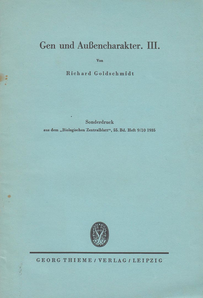 Description Biologischen Zentralblatt, Vol. 55, No. 9/10, 1935, pp. 535-555. Very good condition.* First edition. Offprint. Original wrappers.