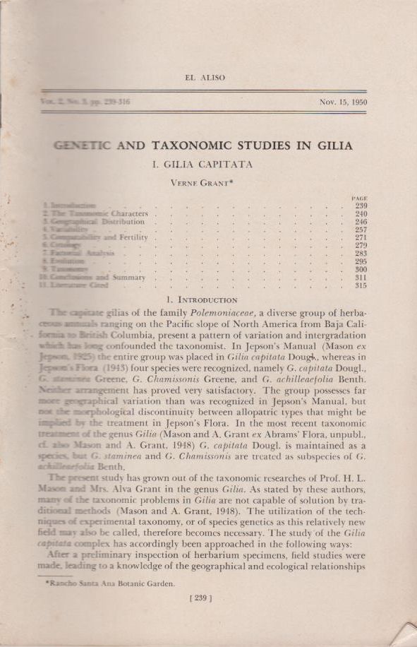 Genetic and Taxonomic Studies in Gilia I. Gilia Capitata