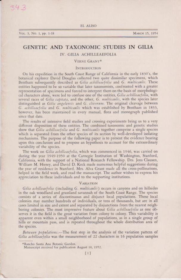 Genetic and Taxonomic Studies in Gilia IV. Gilia Achilleaefolia
