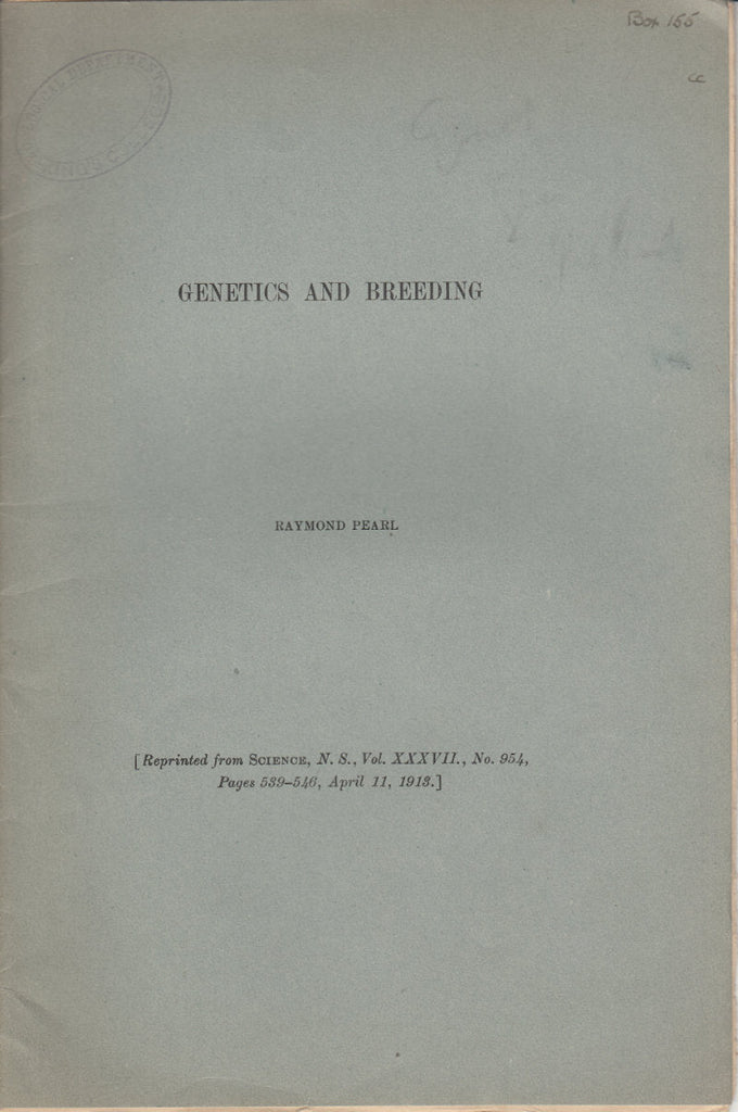 Description First edition. Offprint. Original wrappers. Reprinted from Science, N.S., Vol. XXXVII, No. 954, Pages 539-546, April 11, 1913. Stamp front cover, pages uncut, edges little nicked else very good. *