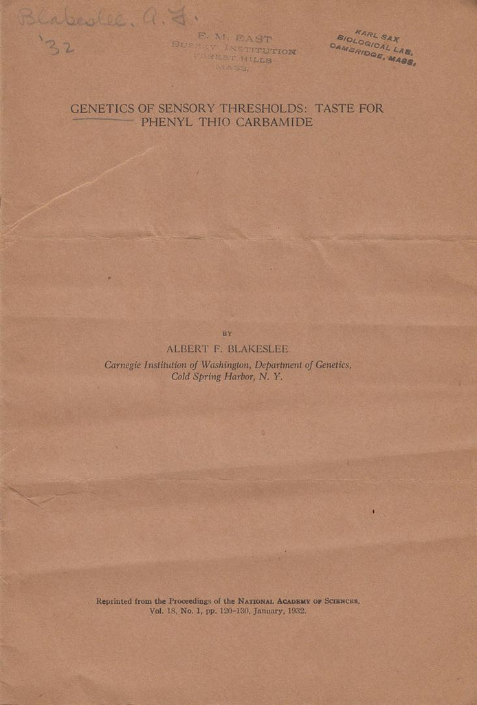 Title Genetics of Sensory Thresholds: Taste for Phenyl Thio Carbamide