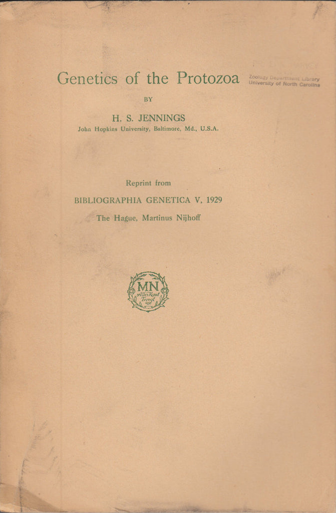 Description First edition. Offprint. Original wrappers. Reprinted from Bibliographia Genetica V, 1929. Ownership stamp from E.N. Harvey front cover. Tears head and heel of spine, covers little soiled else very good. Genetics. Protozoa. Science. *