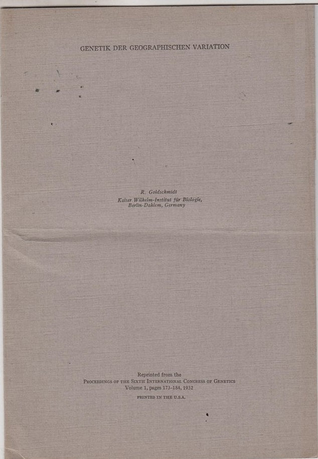 Reprinted from Proceedings of the Sixth International Congress of Genetics Vol. 1, 1932. First separate edition. Offprint. Original wrappers.* |
